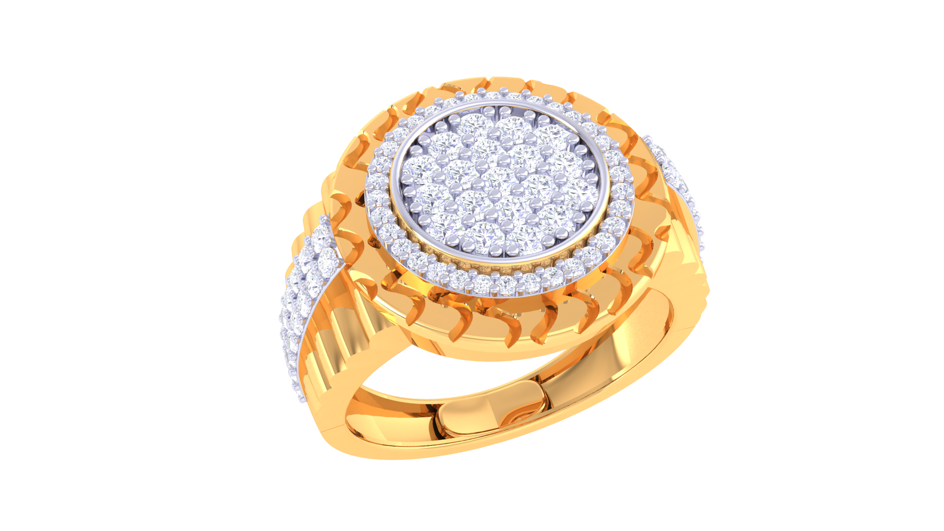 Lumière Orbital Mirage – 0.85ct Diamond Gold Ring showcases a dazzling pavé cluster of round diamonds (0.85ct) encircled by a luminous halo, set on 18kt gold weighing 9.61 grams. The bold orbital motif and shimmering artistry capture the radiance of light in every movement, delivering a statement of modern brilliance and refined elegance.