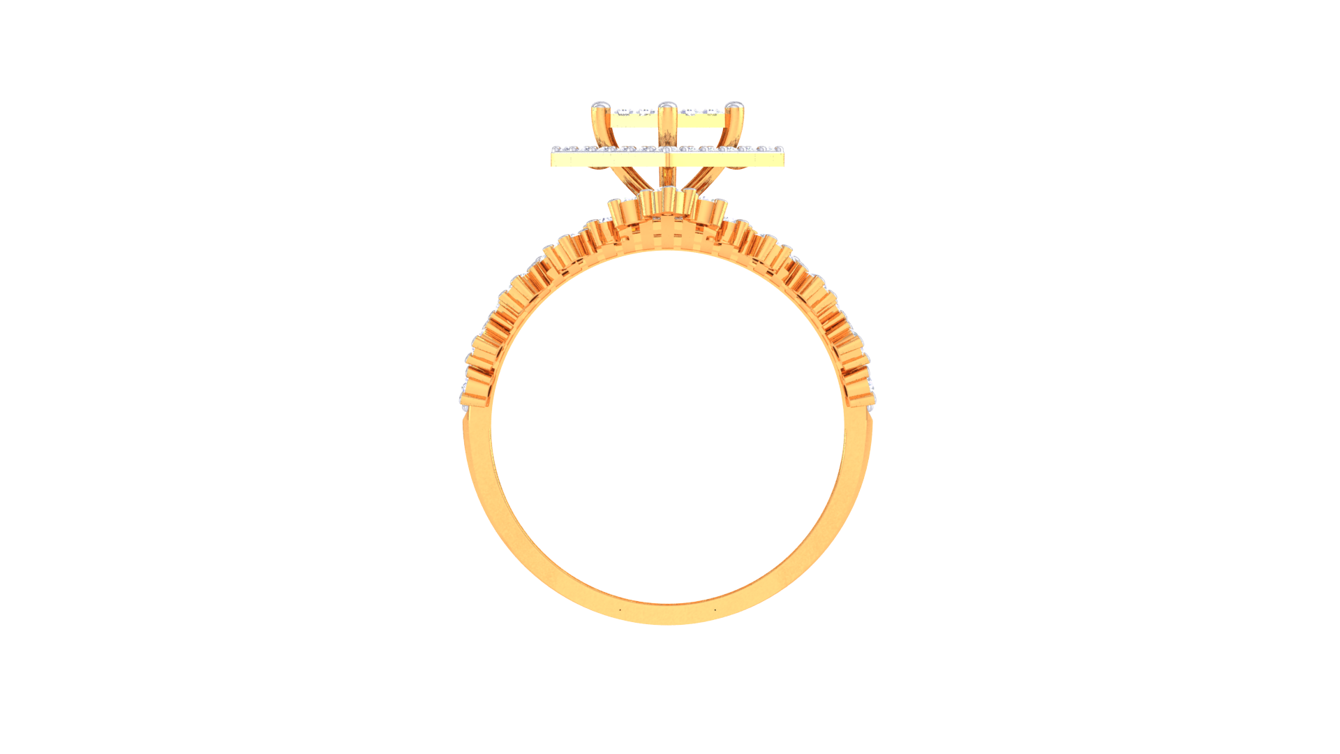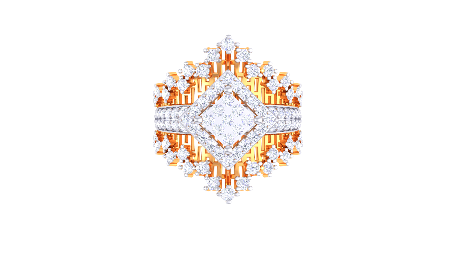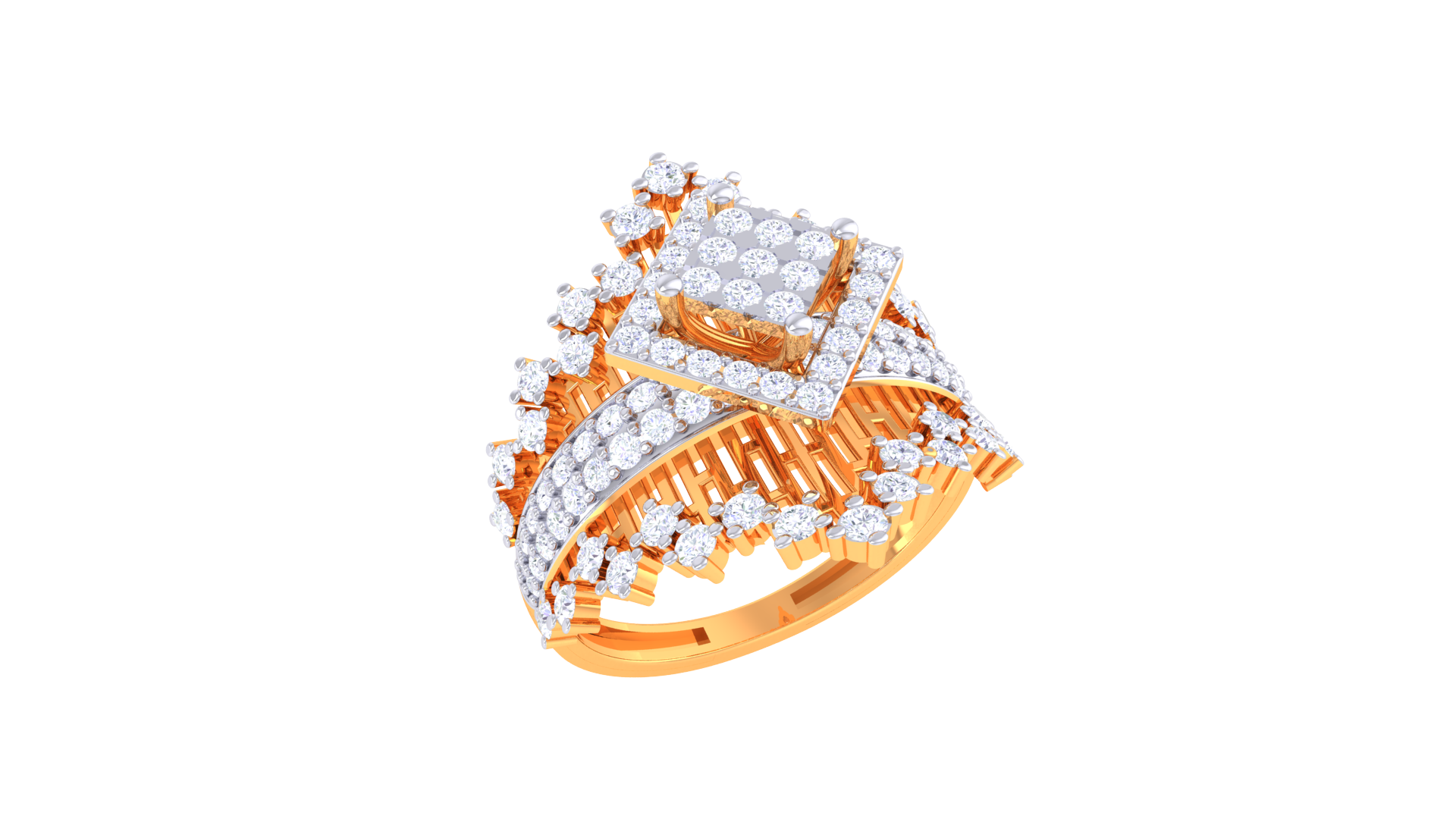 Éclat Paragon Intrépide – 0.9ct Diamond Gold Ring is a striking creation featuring a bold geometric cluster of princess-cut and round diamonds (0.9ct), meticulously arranged for dramatic effect atop 18kt gold weighing 6.5 grams. Its unconventional artistry and multidimensional brilliance make it the ultimate statement in modern luxury.
