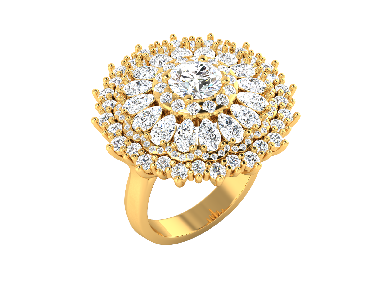 Artisan Petal Bloom - 6.21 Ct Pear Shape Diamond Gold Ring
