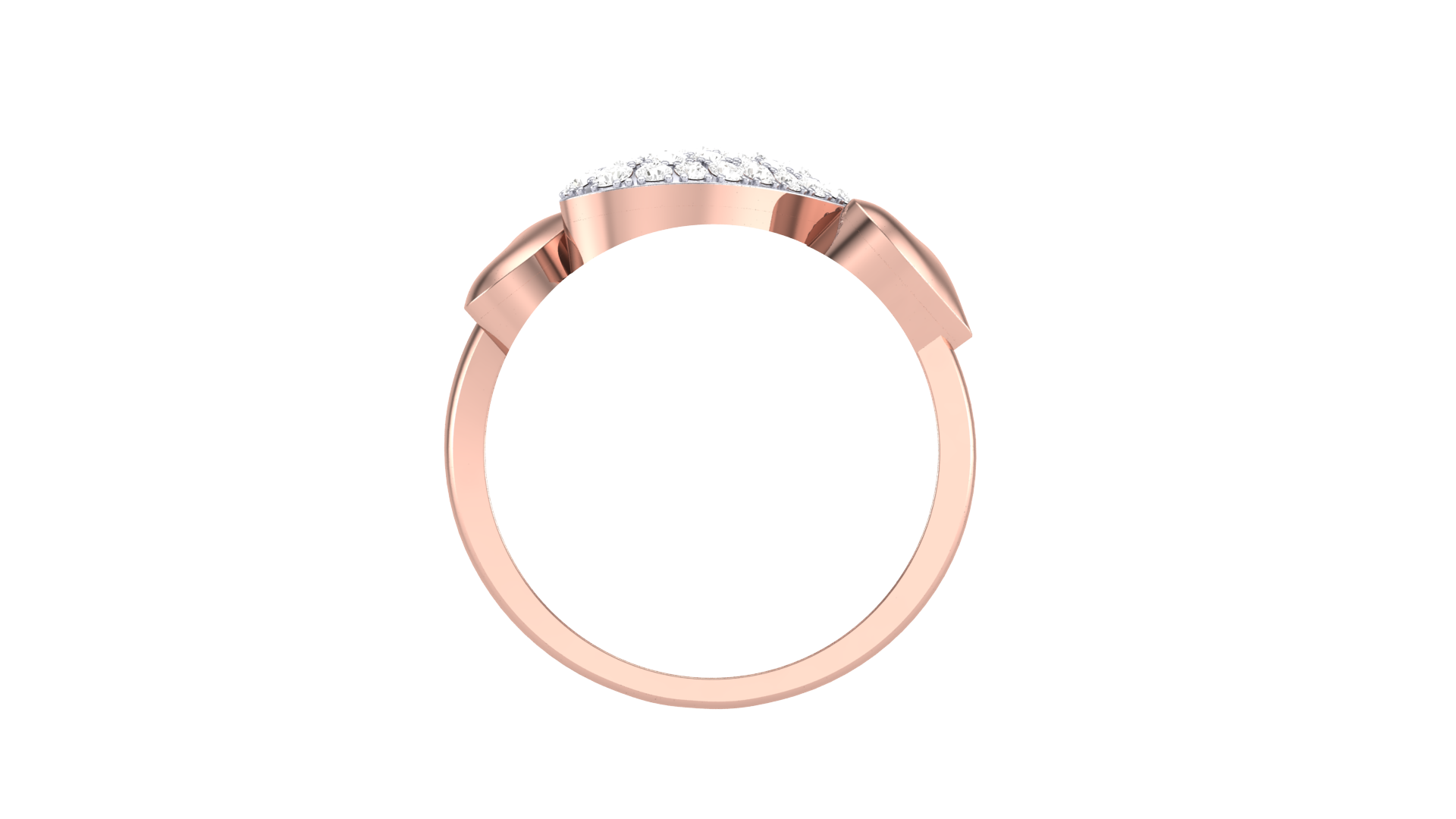 Flanked by two polished rose gold hearts, the design evokes a sense of timeless romance and graceful elegance.