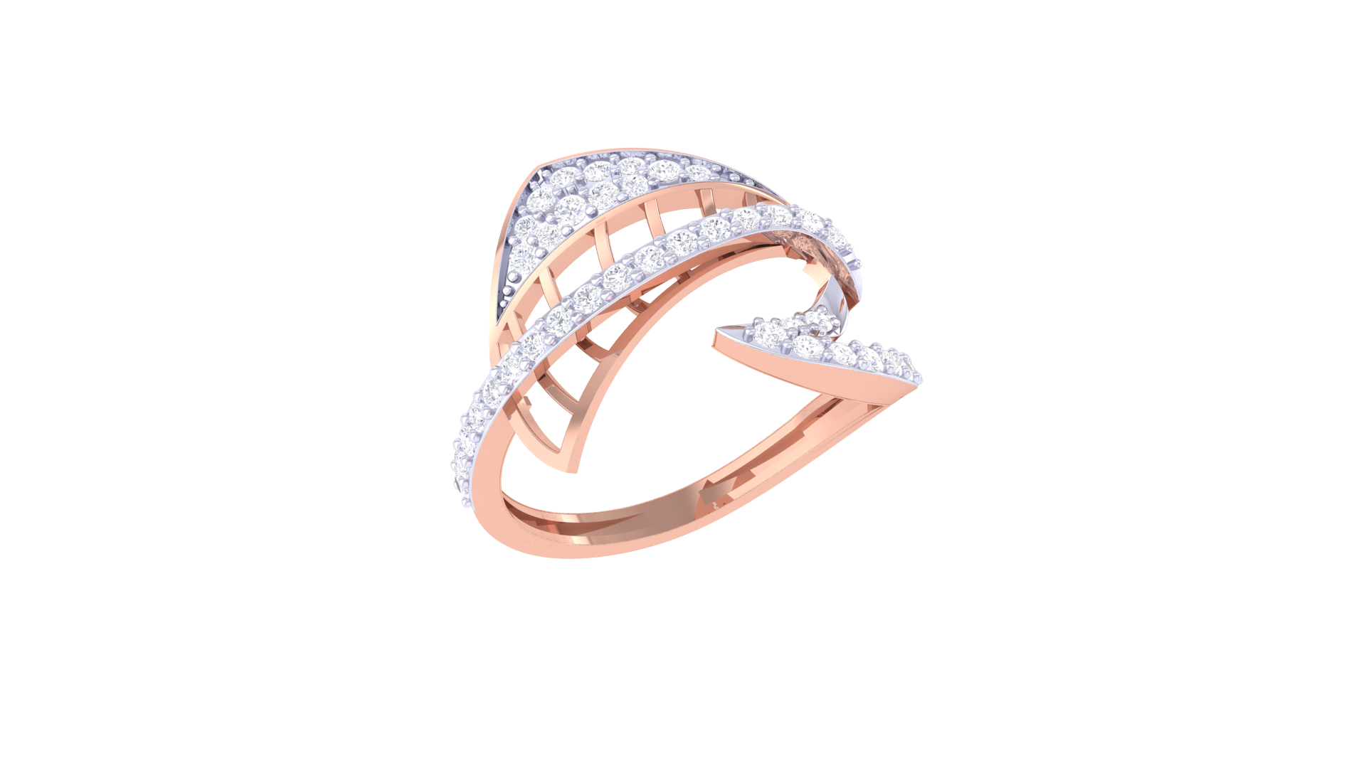 Eclat Geometric Bloom Open Ring In Rose and Yellow Gold – 0.40 Ct Pave Set Diamonds