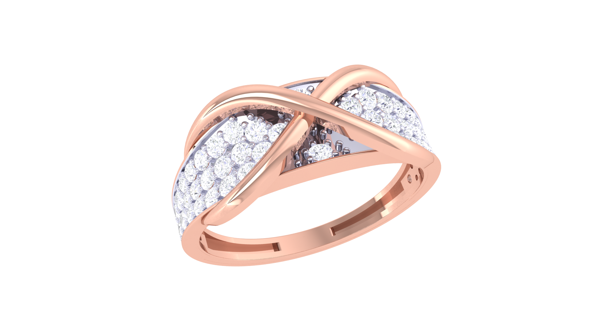 Lumiere Crisscross Band Rose Gold Ring With 0.56 Ct Brilliant Cut Diamonds – Interwoven Brilliance and Sculptural Grace