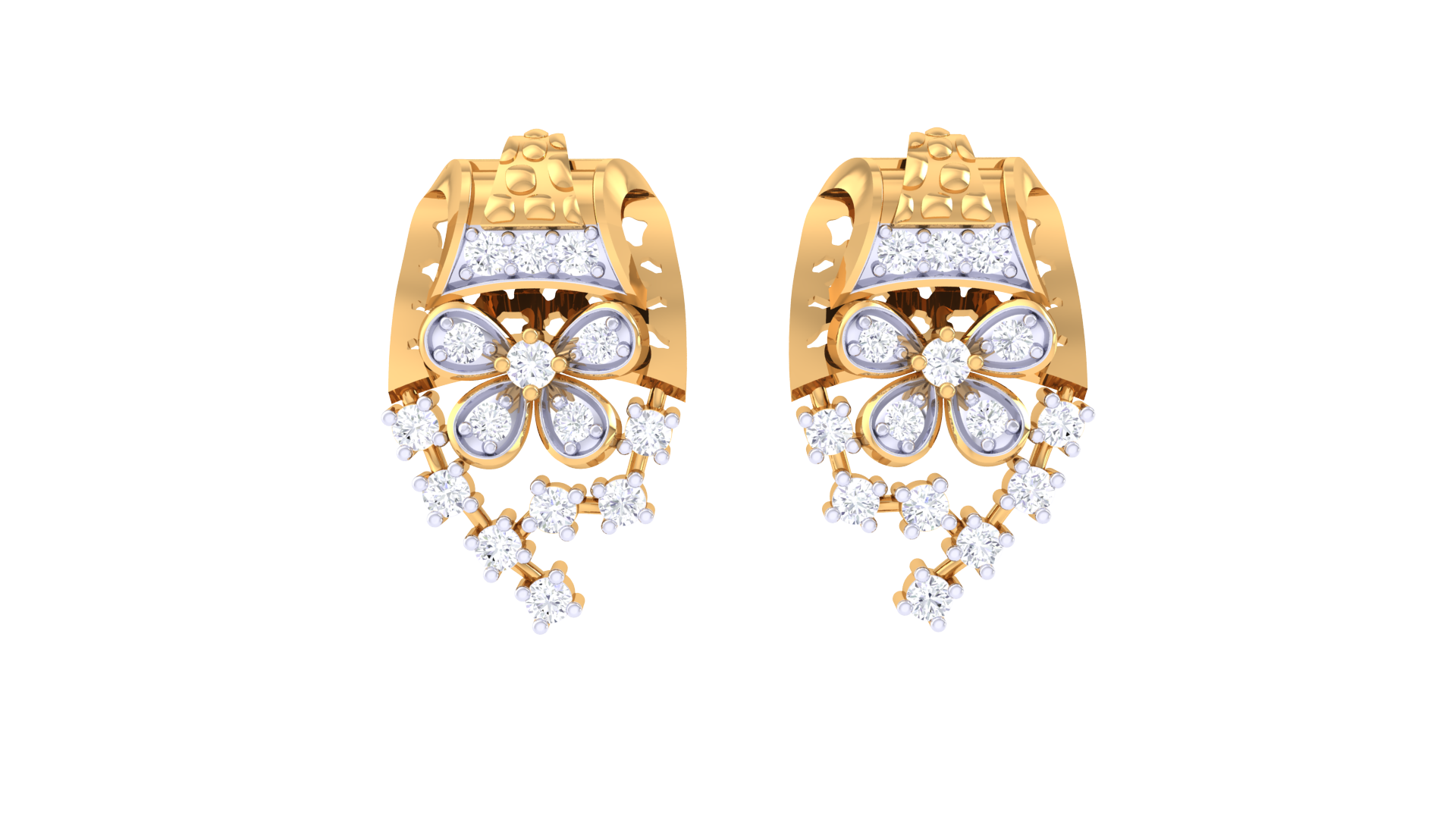 Crafted in 3.44 grams of radiant gold, these exquisite earrings feature a central floral motif adorned with 0.26 carats of brilliant diamonds.