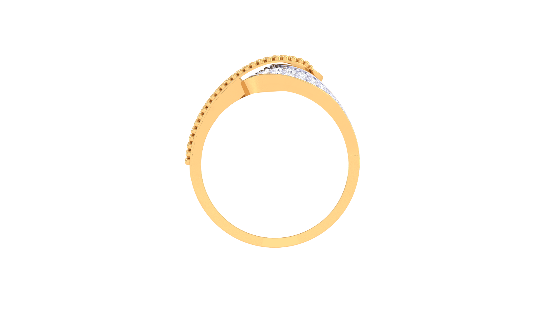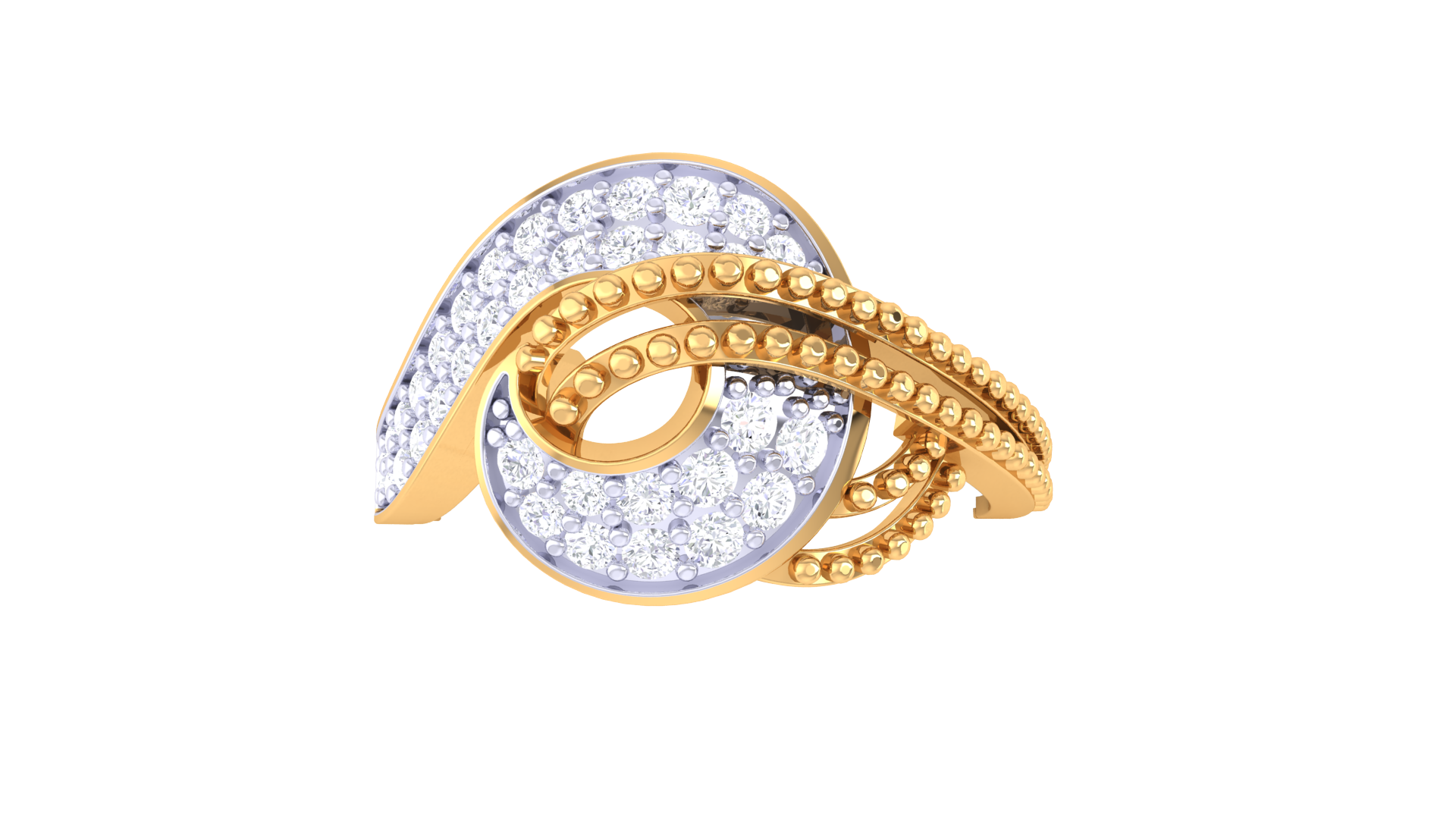 Its swirling centerpiece sparkles with 0.17 carats of round-cut diamonds, bordered by a graceful row of beaded detailing that adds depth and dimension.