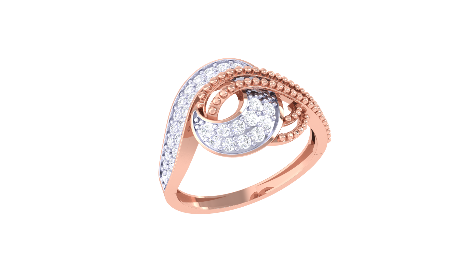 Lumiere Ornate Swirl Ring With 0.17 Ct Round Cut Diamonds In Rose Gold - Vintage Texture With a Modern Twist