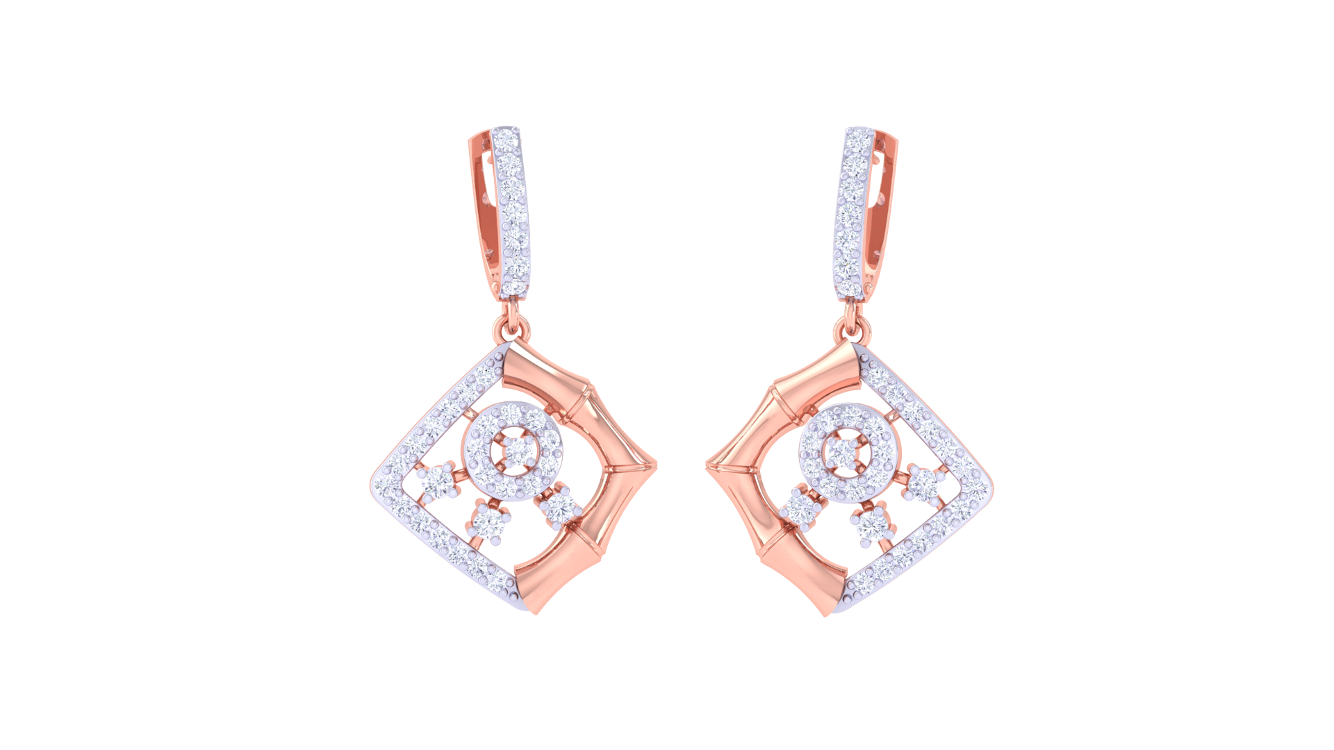 Suspended from a diamond-studded vertical bar, the design offers a harmonious balance of structure and elegance—perfect for festive occasions, evening wear, or gifting with grace.