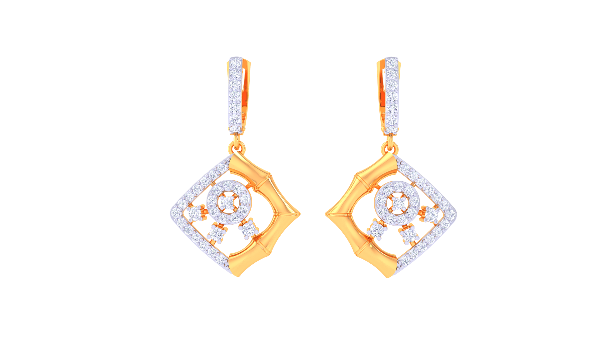Crafted in 3.96 grams of radiant gold, these geometric drop earrings blend modern symmetry with timeless sparkle.