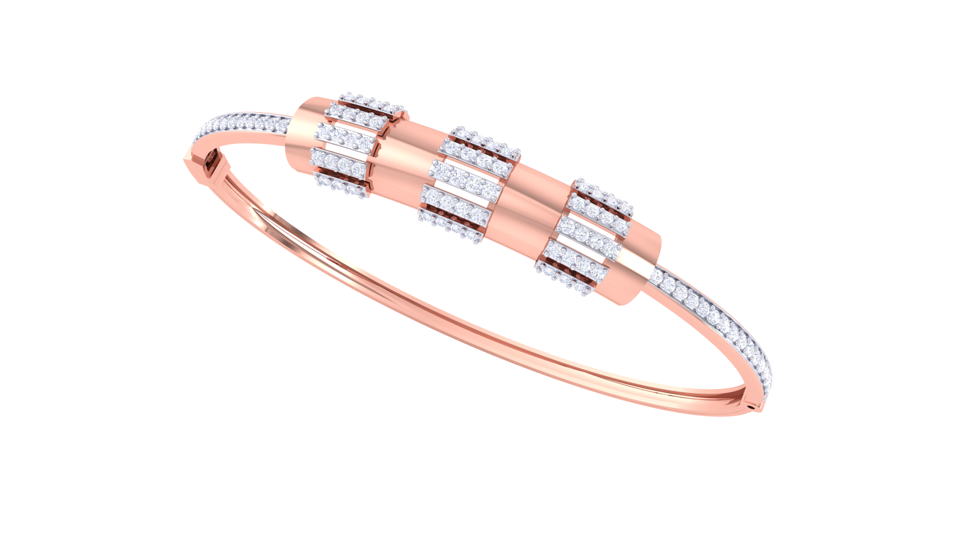 The outer edge of the band is lined with a shimmering trail of diamonds, enhancing the bracelet’s visual rhythm and adding a touch of opulence.