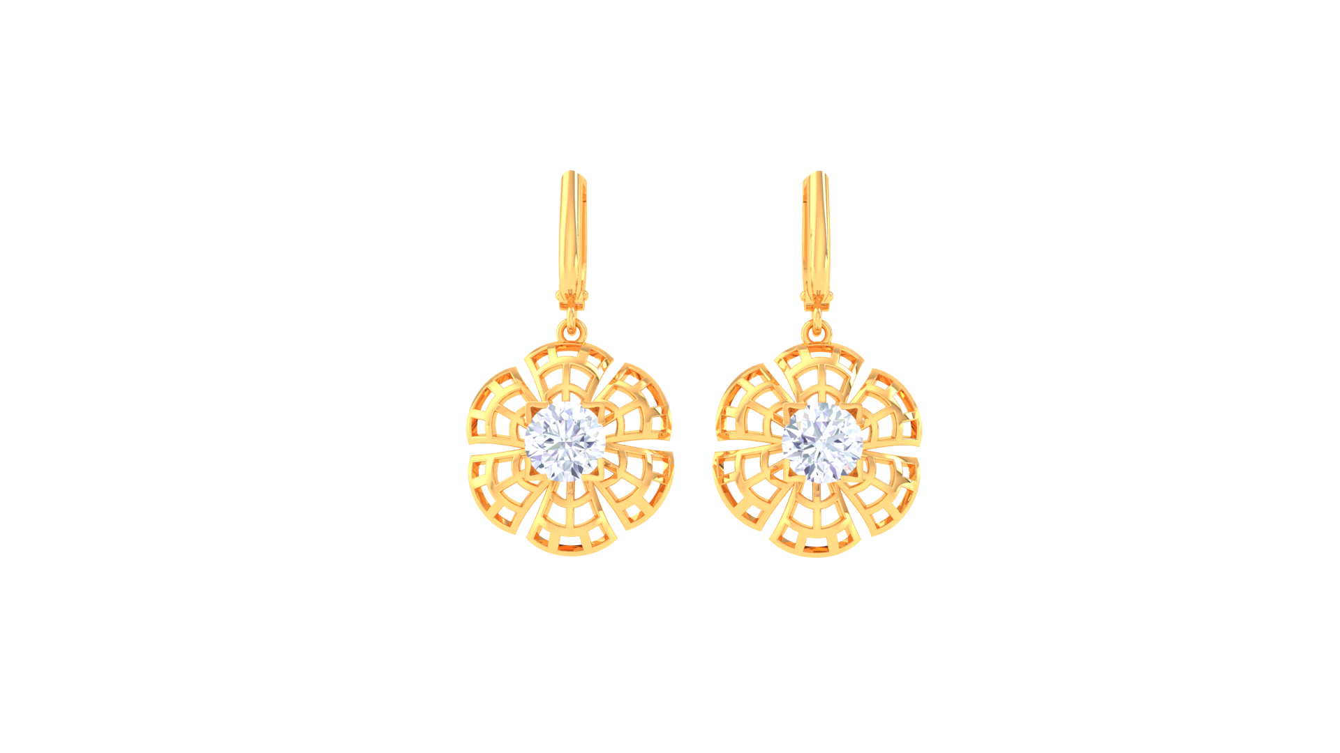 Lattice Petal Gold Hoop Earrings - 0.64 Ct Round Diamond