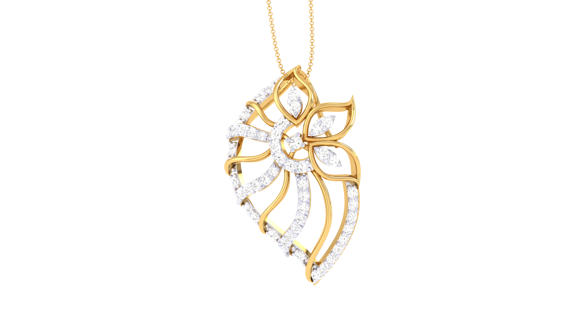 Stylized Leaf Motif Pendant In Gold – 0.37 Ct Sparking Diamonds