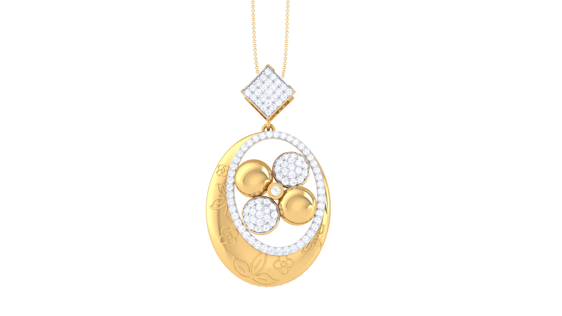 Crafted from 3.95 grams of gold, this pendant features a graceful oval frame engraved with delicate floral motifs.
