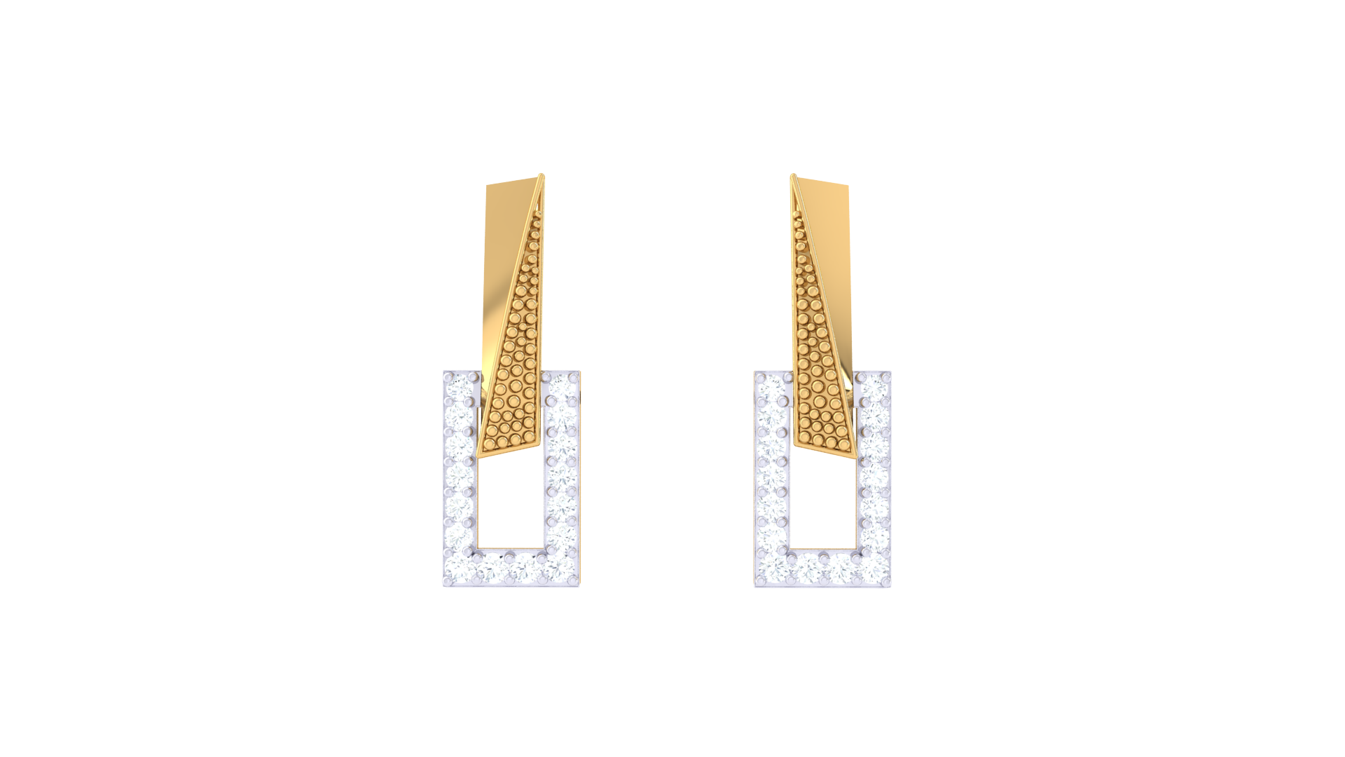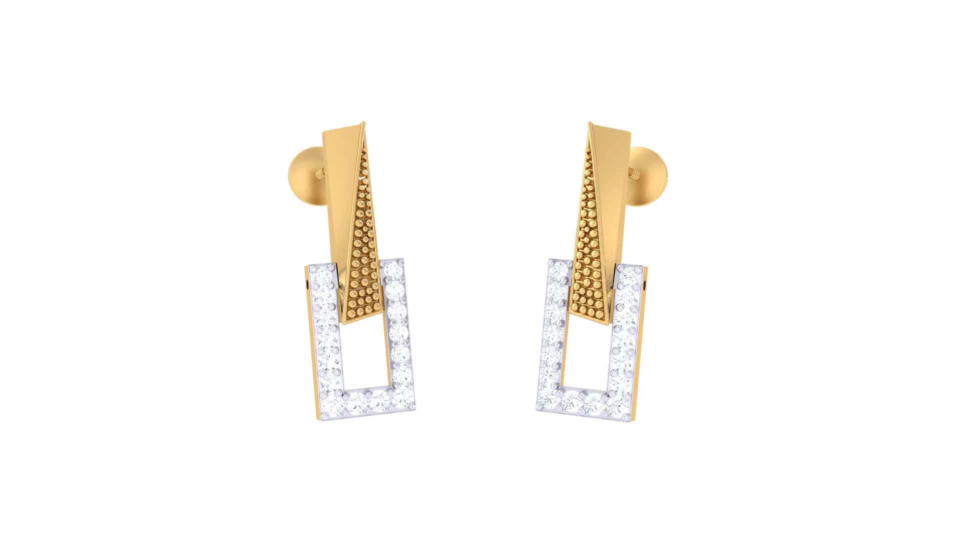 A bold fusion of texture and geometry, these gold stud earrings feature a striking triangular top paired with a rectangular frame encrusted with 0.22 carats of brilliant-cut diamonds.
