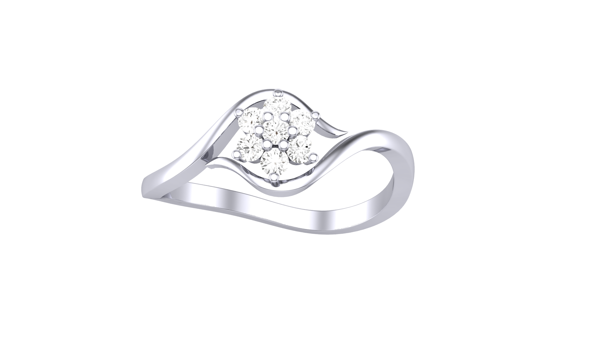 This 1.75-gram ring showcases a seven-diamond floral cluster at its heart, totaling 0.15 carats of radiant sparkle.