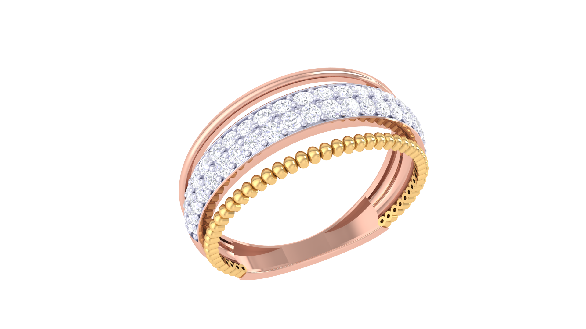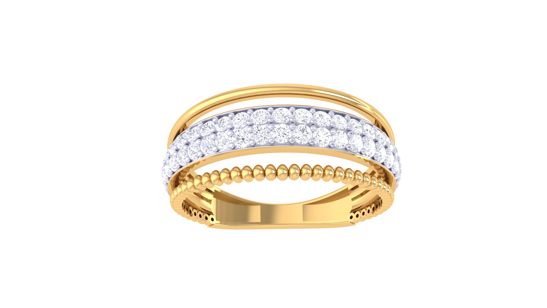 Framed by polished gold bands above and a beaded texture below, this design blends classic sophistication with modern artistry.