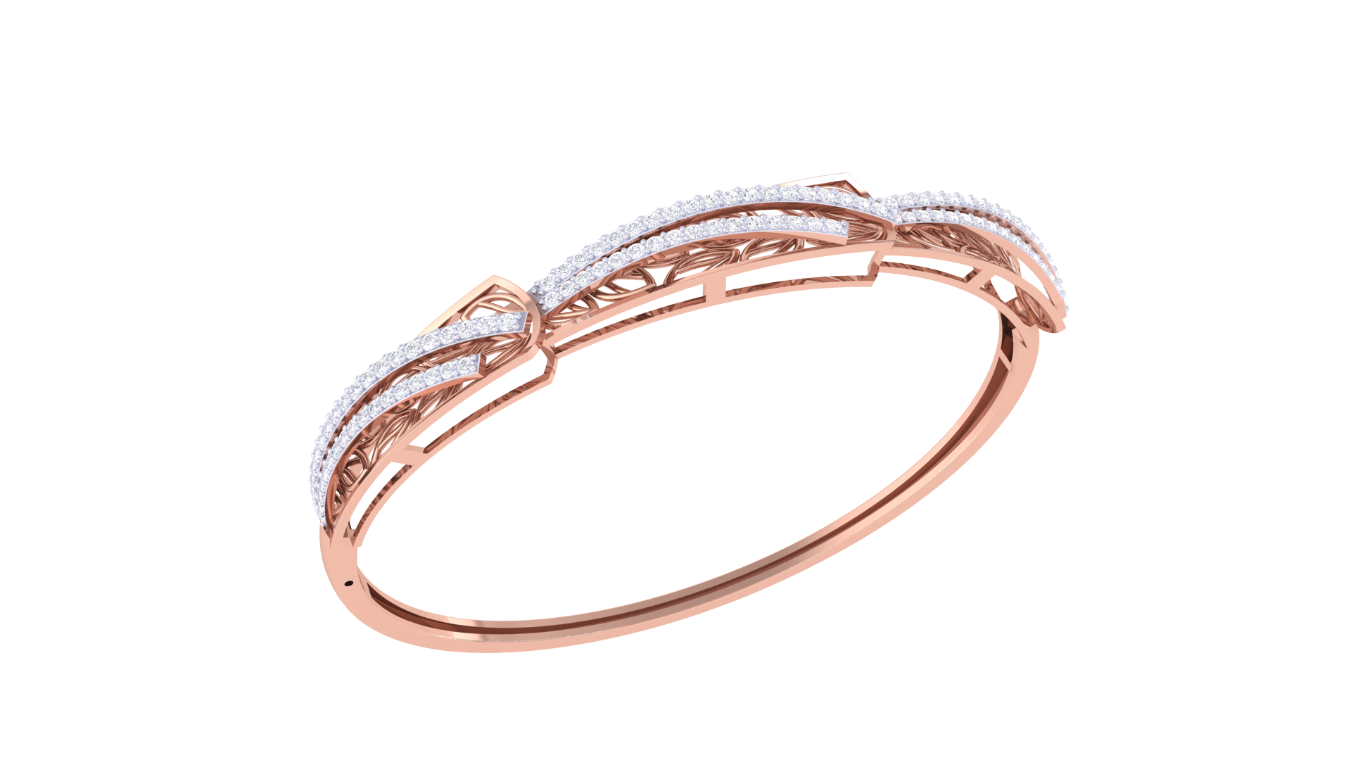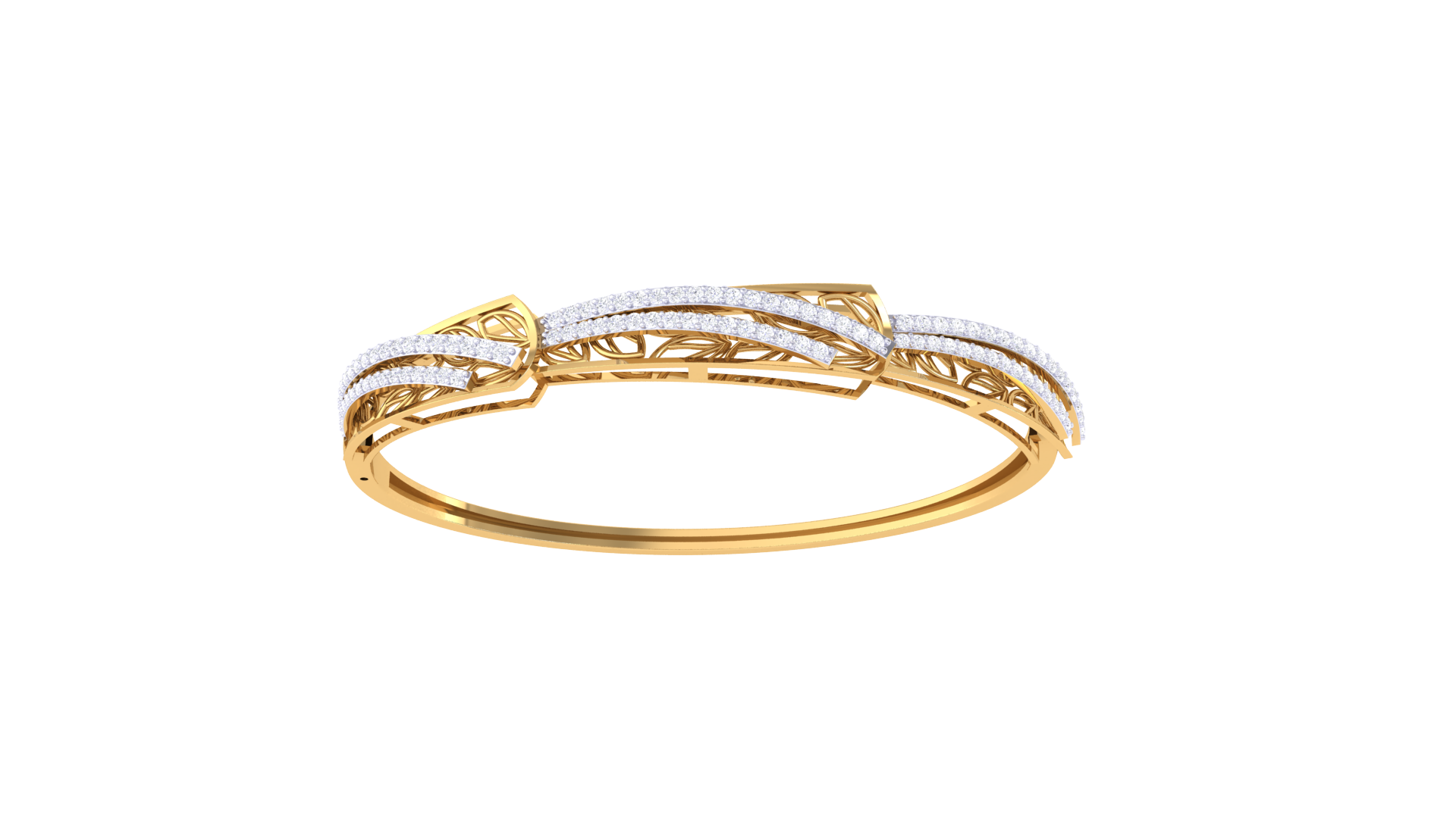 Wave Filigree Gold Bangle Bracelet - 0.77 Ct Diamond Accents