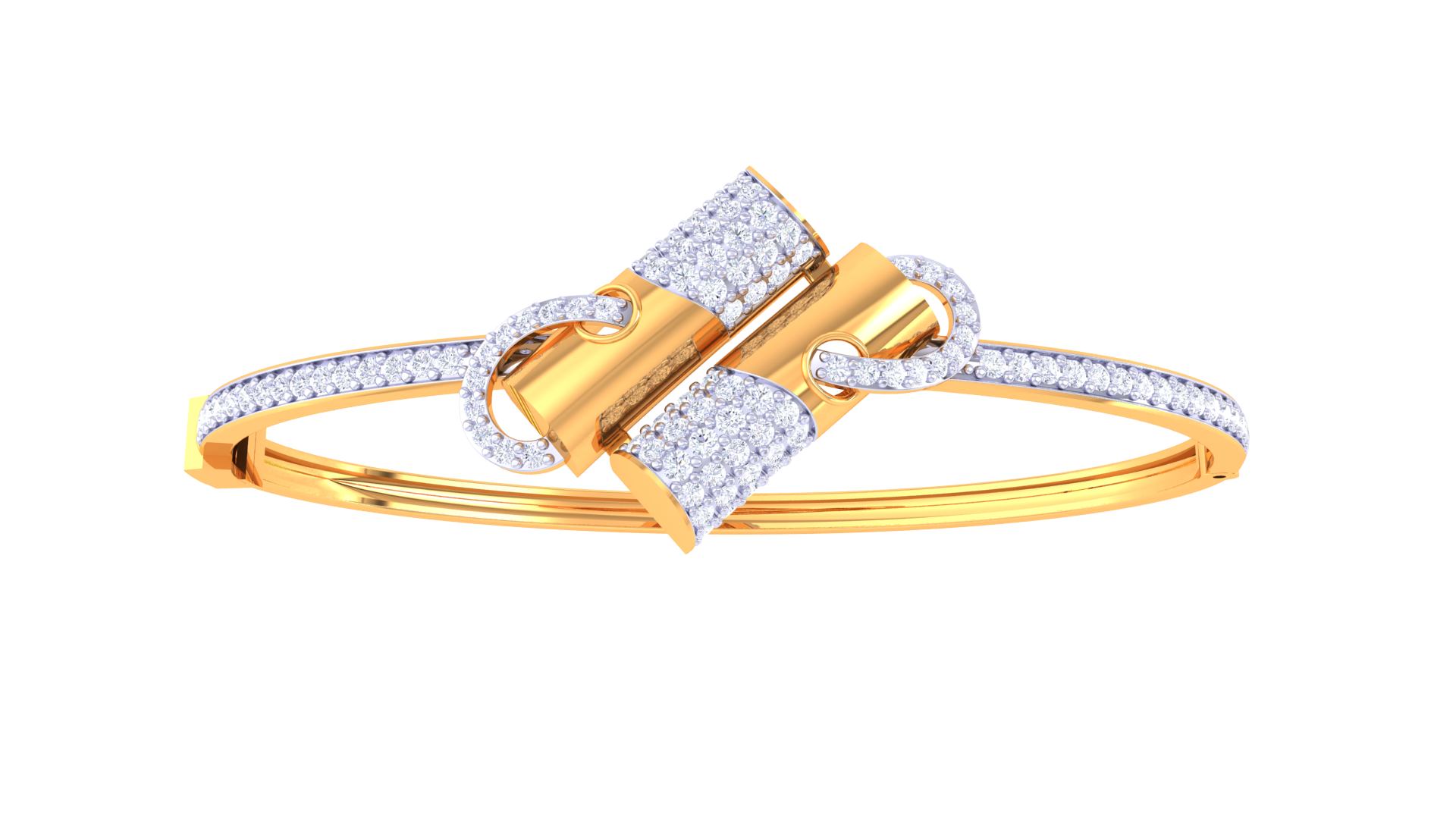 A masterstroke of elegance, this handcrafted gold bracelet showcases a harmonious blend of sculptural design and radiant sparkle.