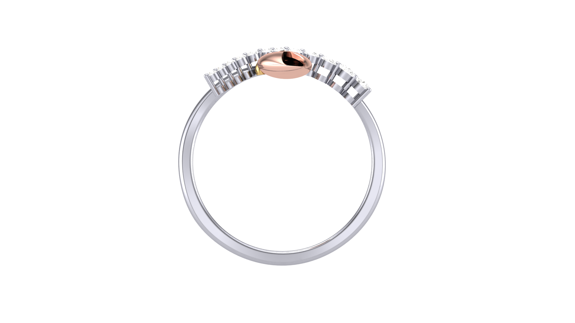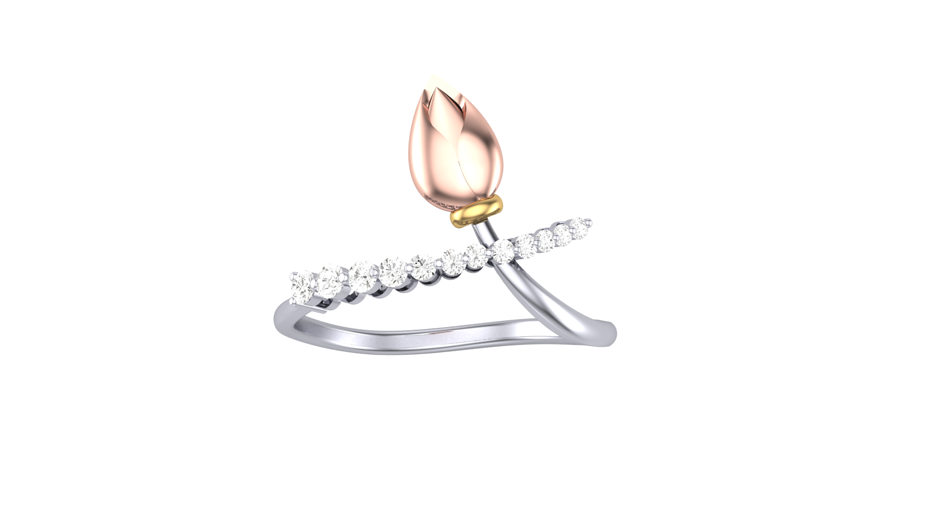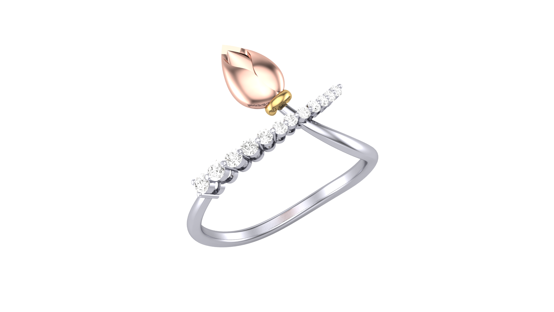 Rising from the band is a flame-inspired petal in rose gold, anchored by a delicate yellow gold accent—an expressive detail that evokes warmth and movement.
