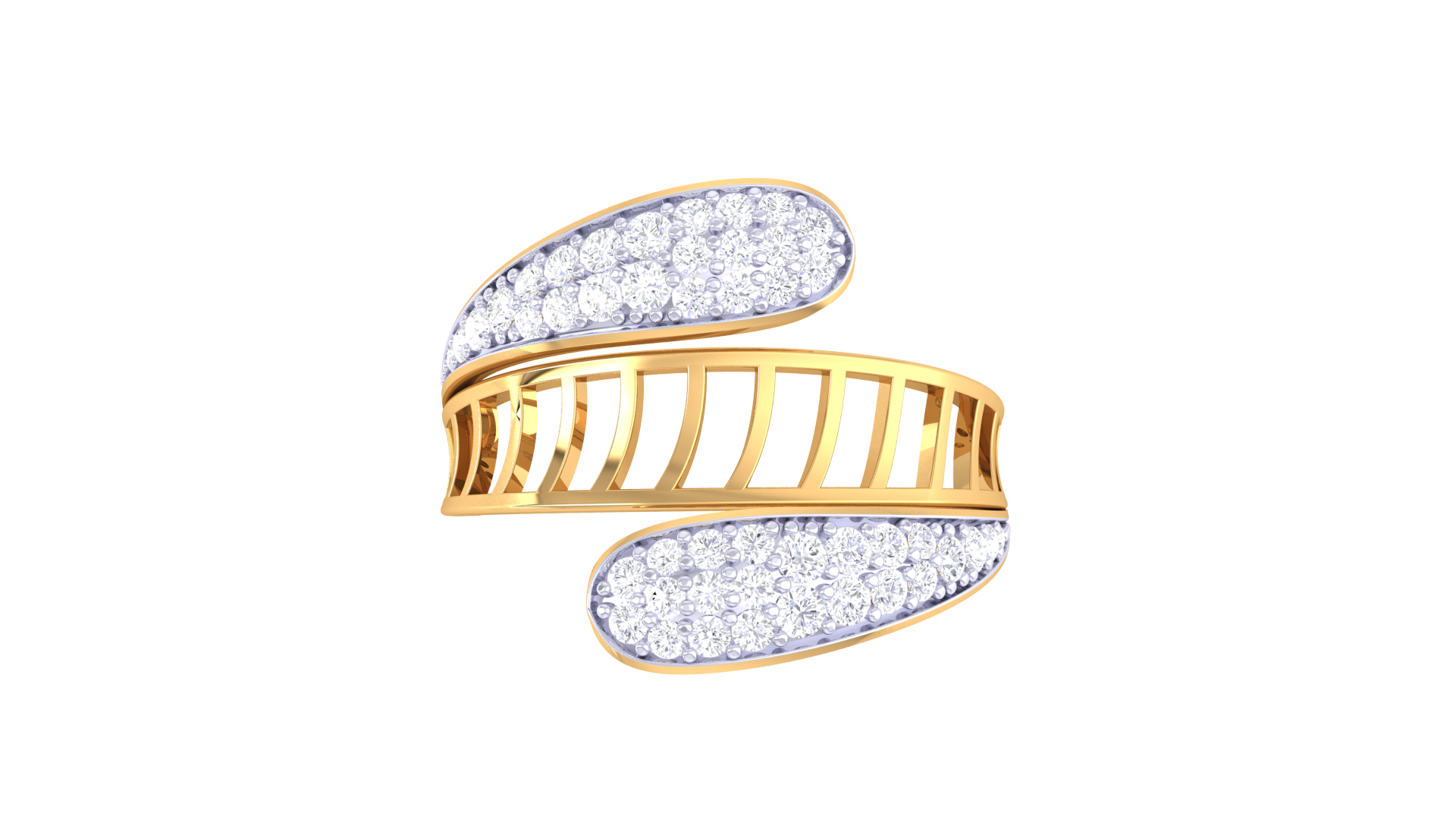 Two curved, diamond-encrusted arcs frame the center, connected by vertical gold bars that create a sculptural lattice effect.