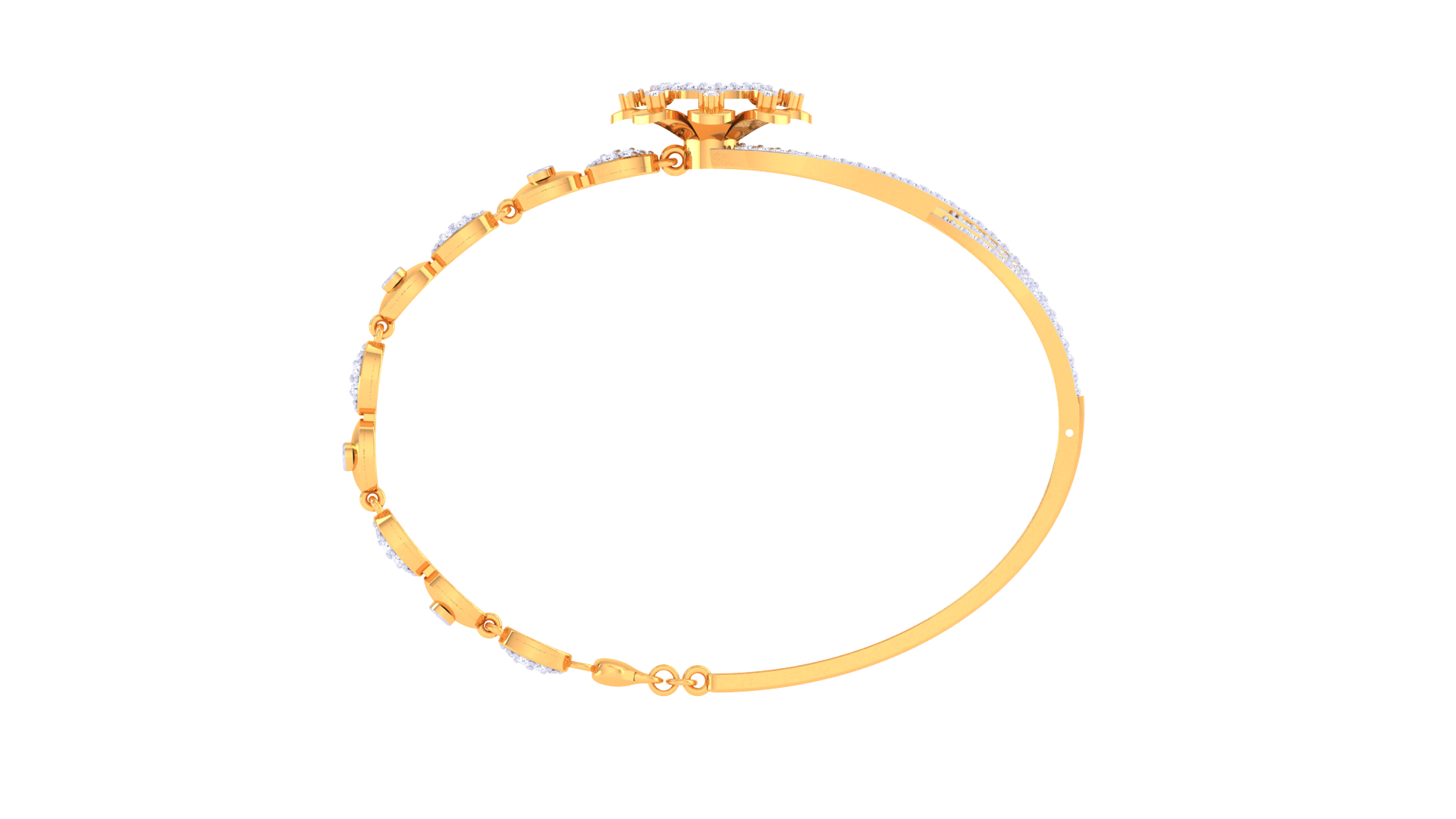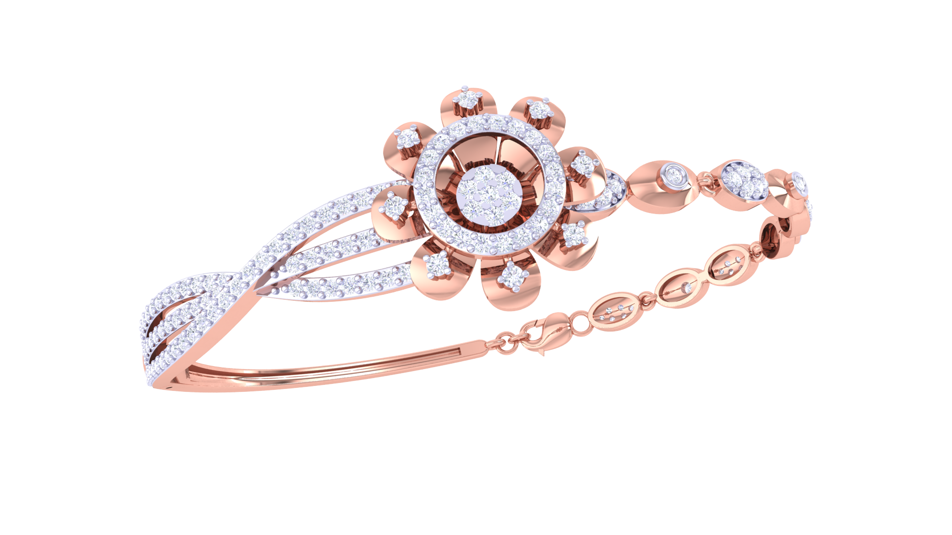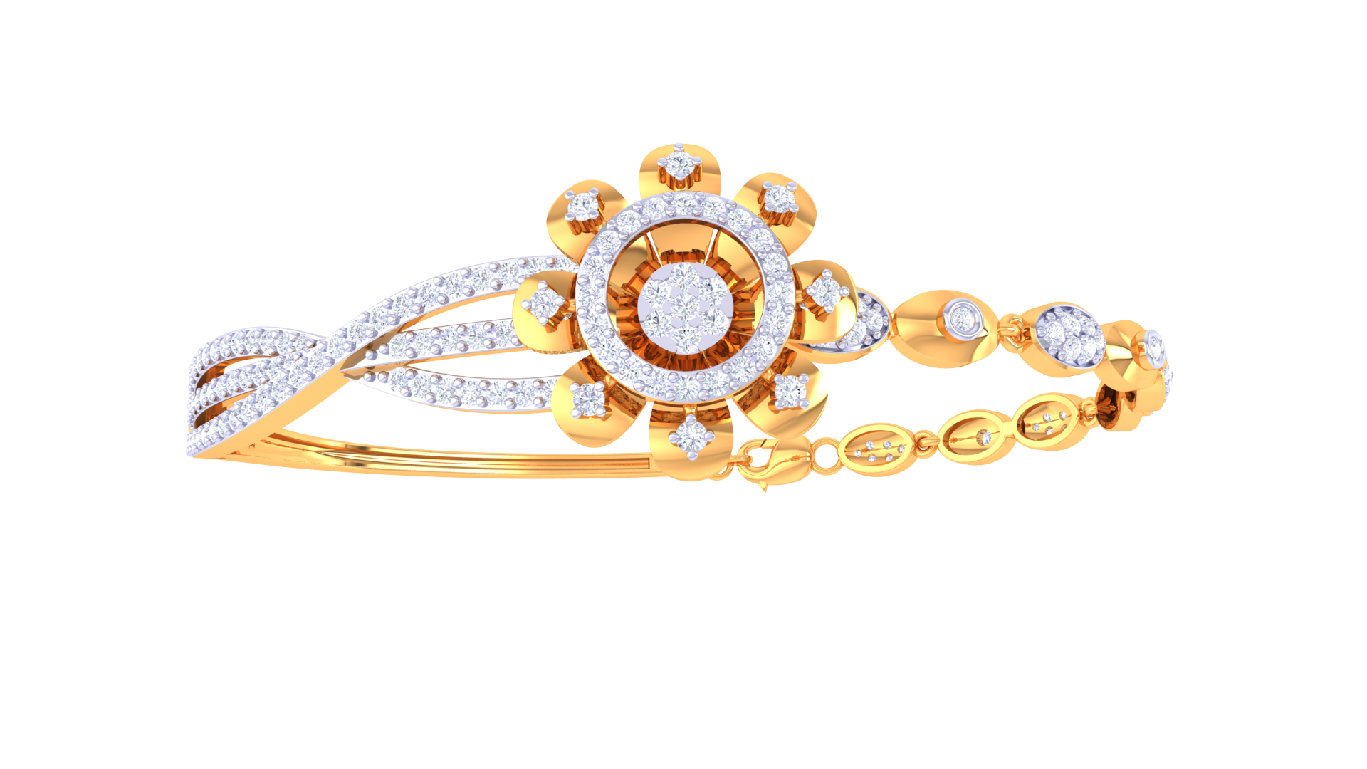 Twist Bloom Gold Bracelet With Sculpted Floral Centerpiece - 1.04 Ct Round Diamonds