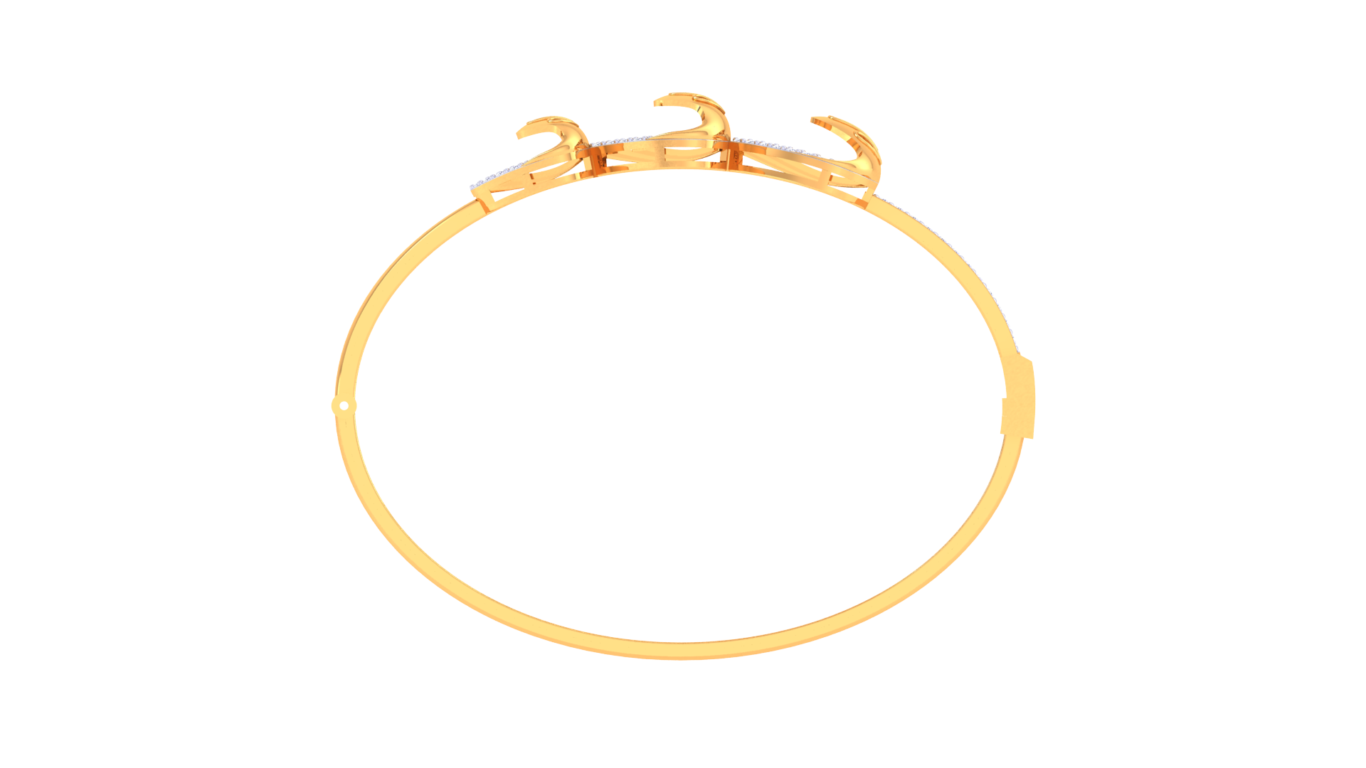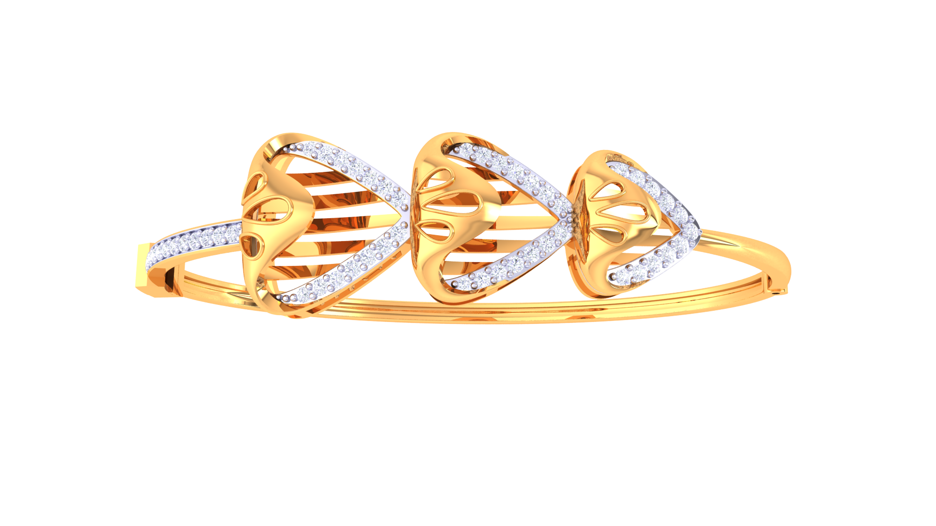Crafted from 8.36 grams of luminous gold, this bracelet showcases a trio of petal-inspired motifs, each delicately edged with sparkling diamonds totaling 0.55 carats.