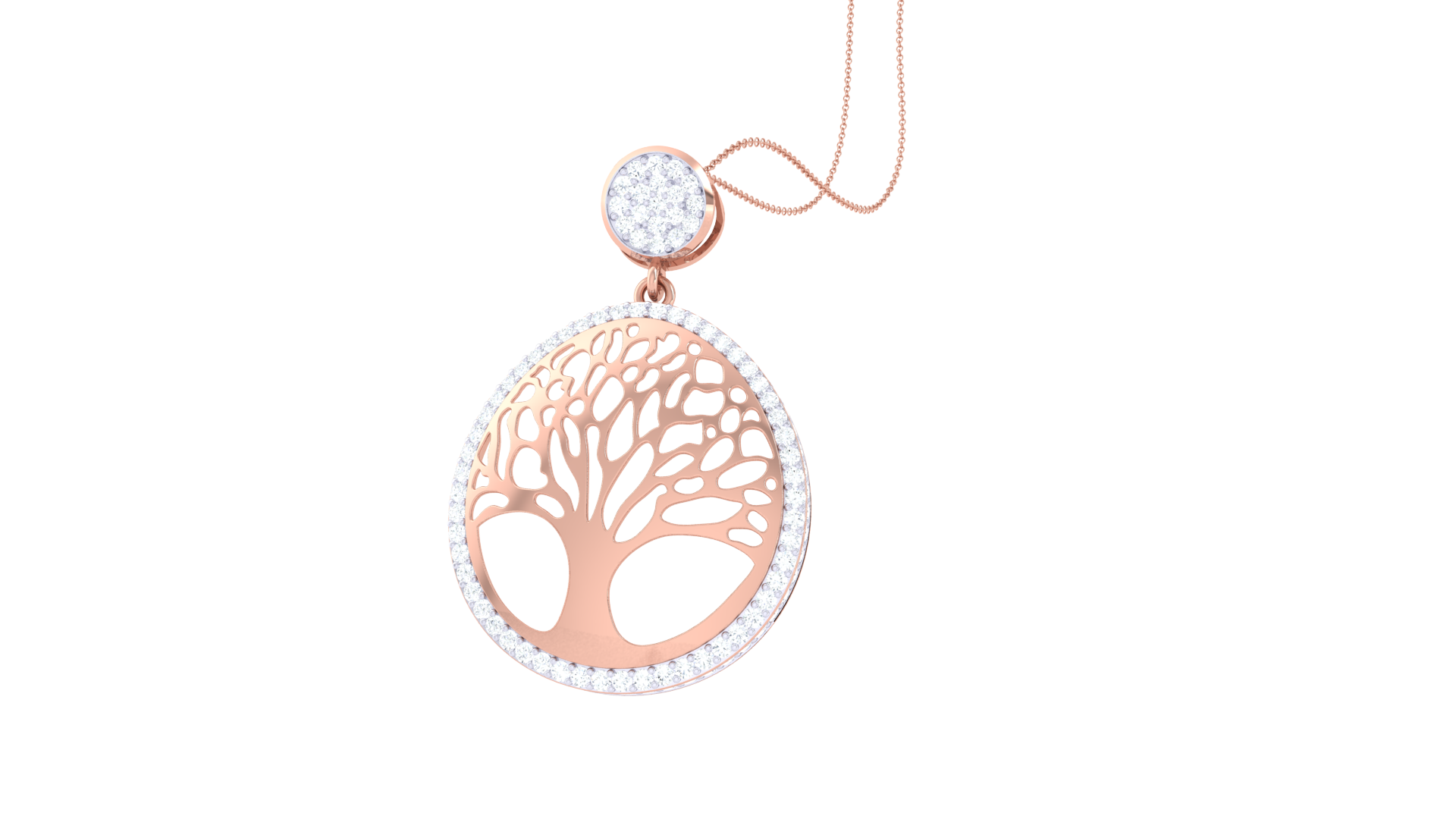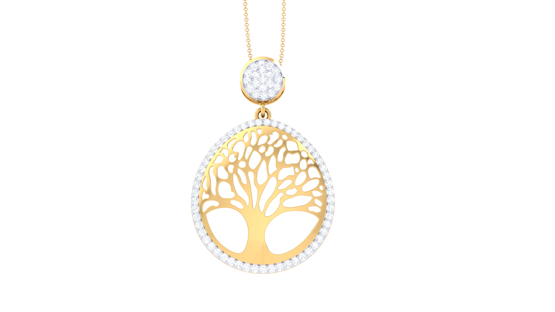 Tree of Life Oval Pendant In Gold - 0.79 Ct Diamond Halo