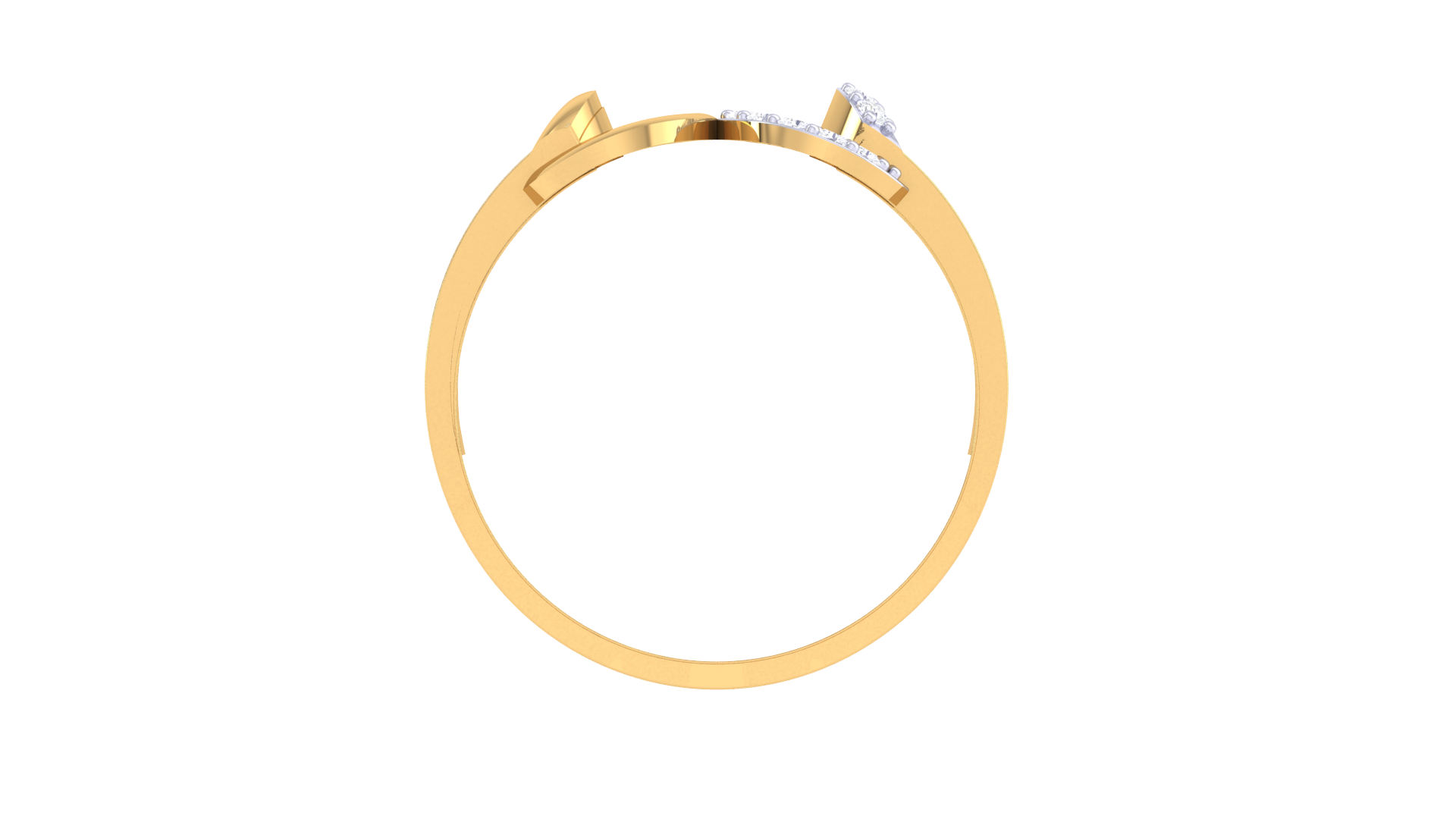 The fluid curves and openwork design create a sense of movement and modern artistry, while the contrast between smooth gold and sparkling stones adds depth and sophistication.