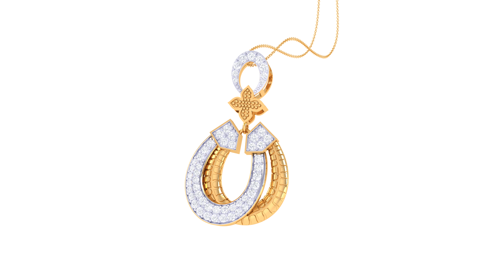 Delicate Floral Lustrous Gold Pendent - 0.52 Ct Sparking Round Diamonds