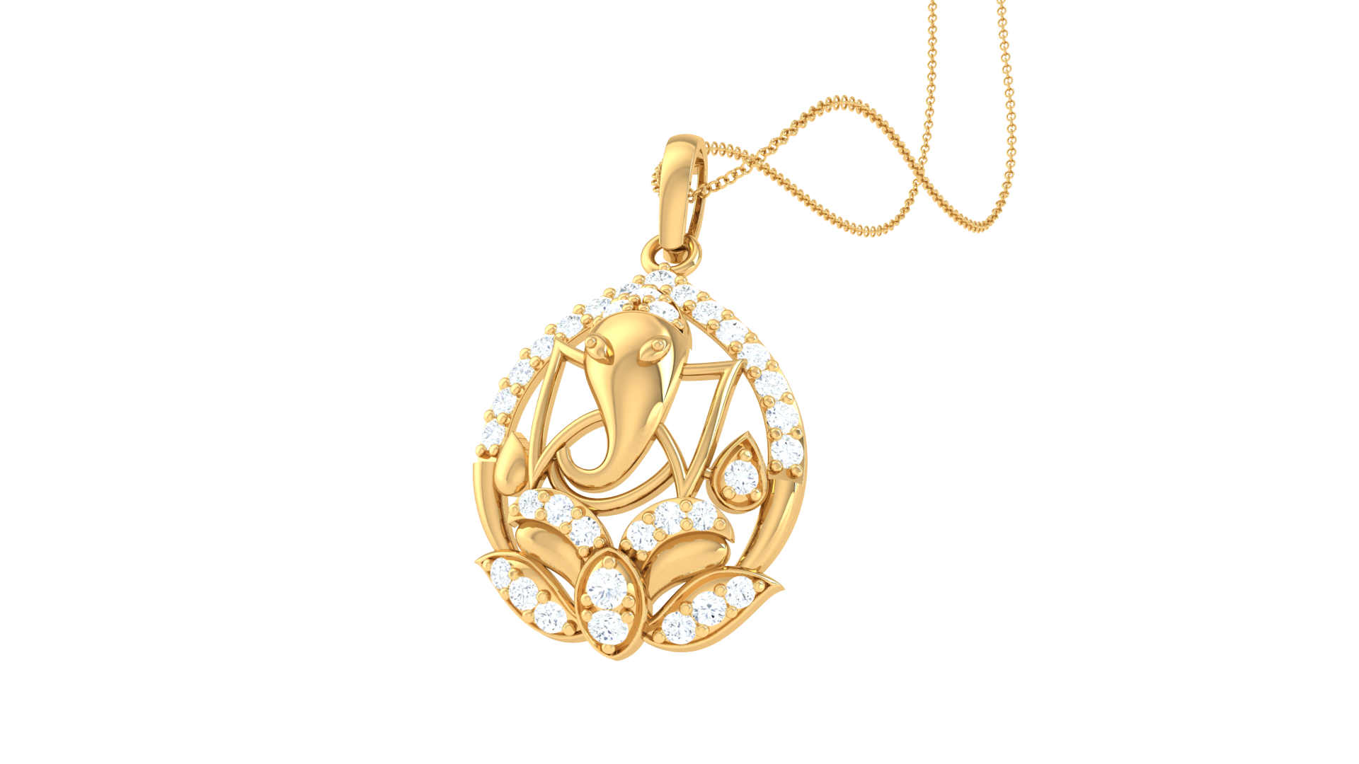 Divine Grace Shri Ganesha Pendant In Gold – 0.21 Ct Marquise-Cut Diamonds