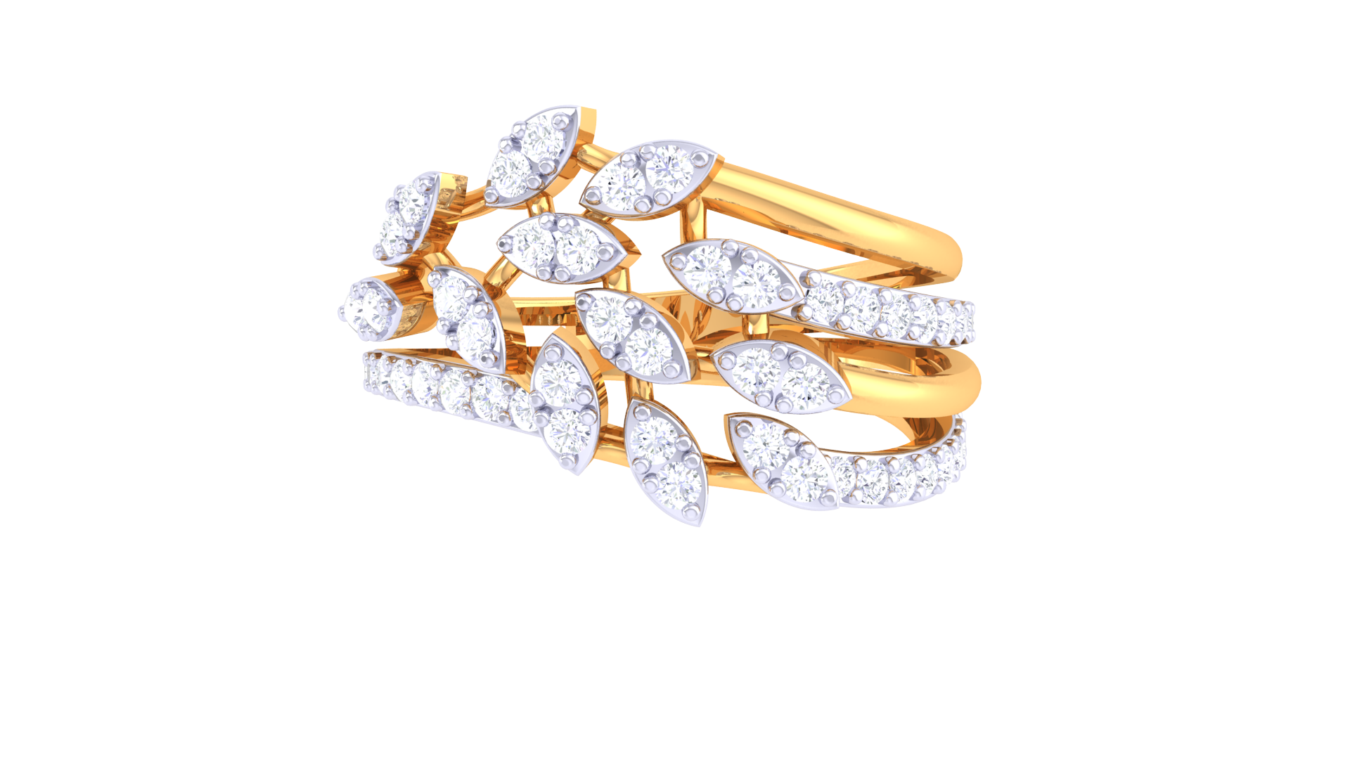 A poetic fusion of nature and luxury, this multi-band gold ring features a flowing arrangement of leaf-shaped diamond motifs, delicately set to evoke organic elegance.