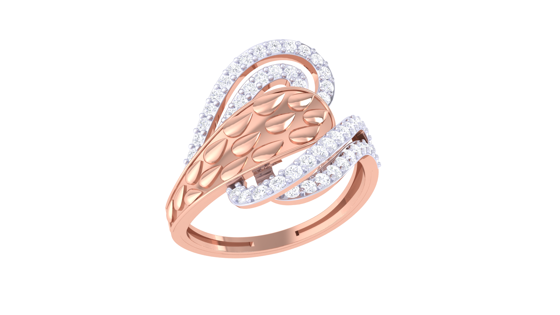 A sculptural symphony of elegance, this rose gold ring is crafted from 3.28 grams of polished gold and adorned with 0.25 carats of brilliant round-cut diamonds.