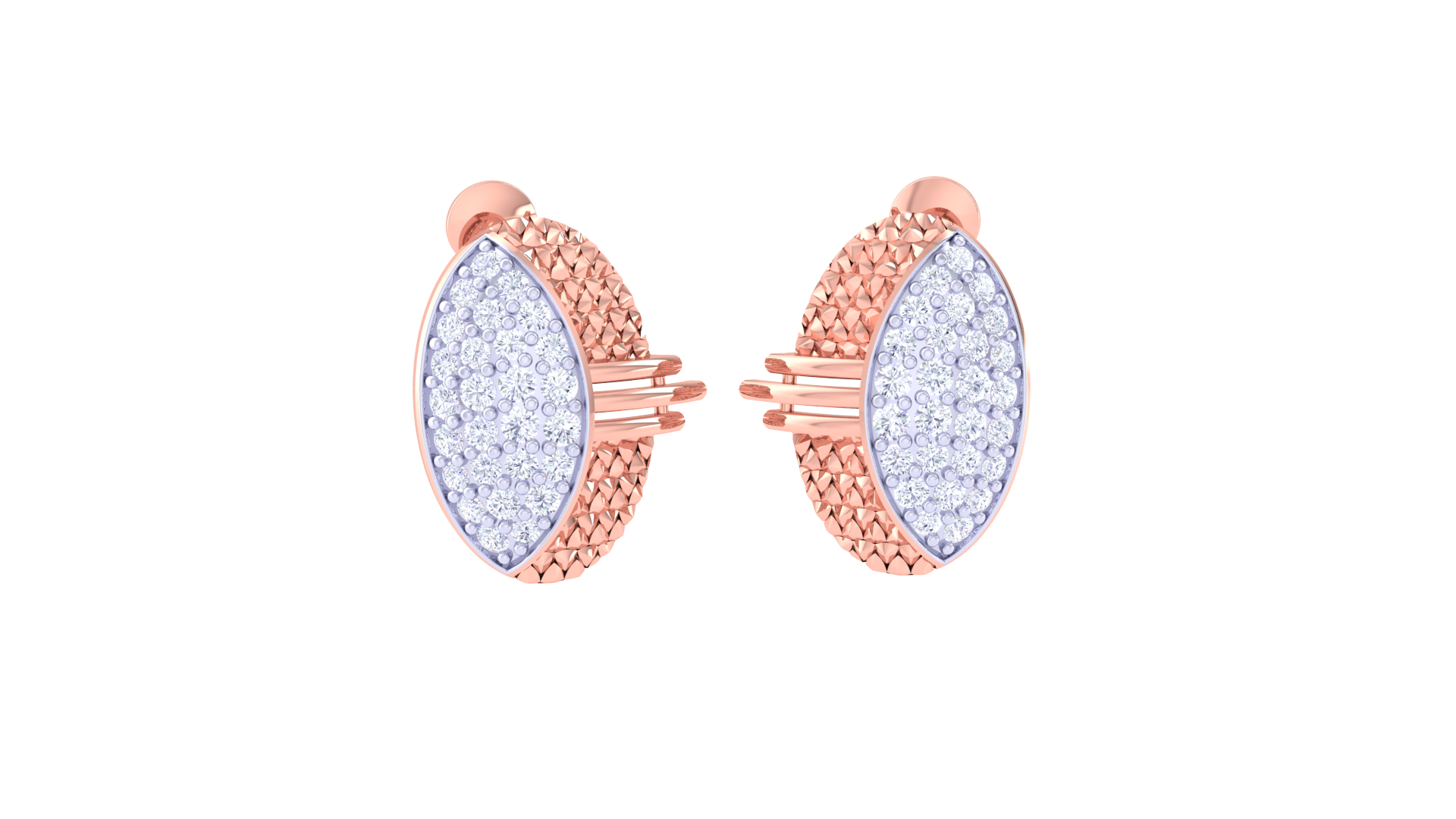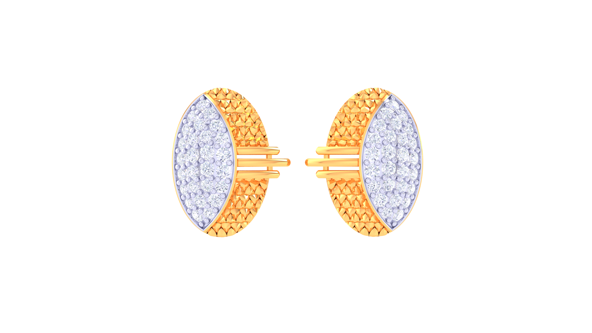 Dual Texture Oval Diamond Stud Earrings In Gold – 0.51 Ct Pave Set