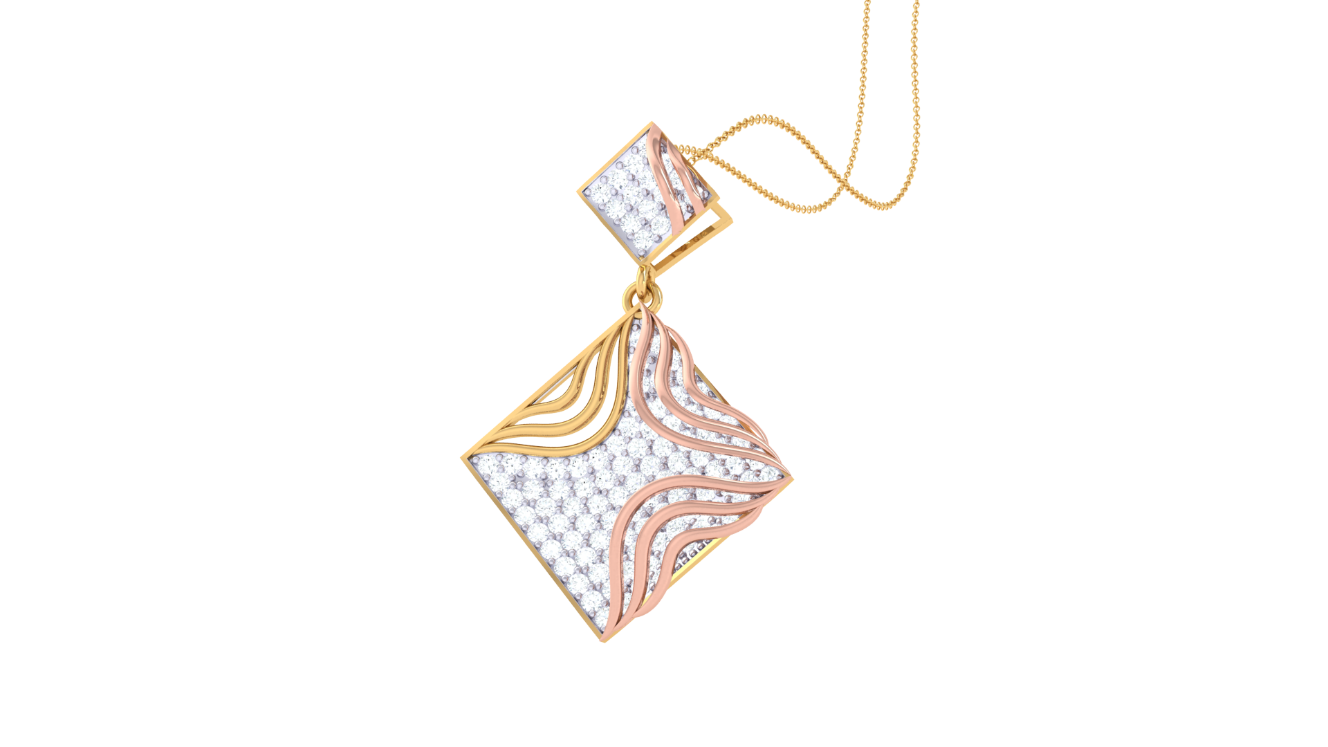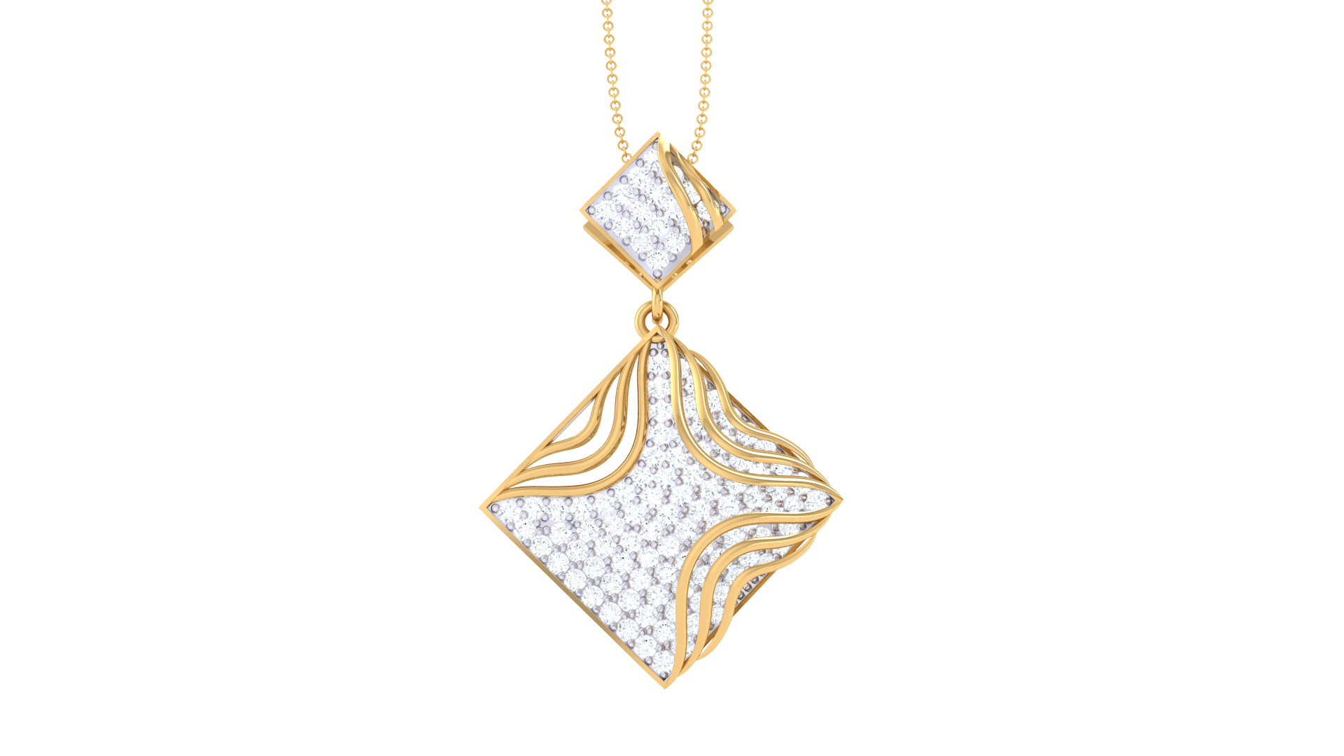 Twin Diamond-Shaped Pendant With Wave Accents – 0.87 Ct
