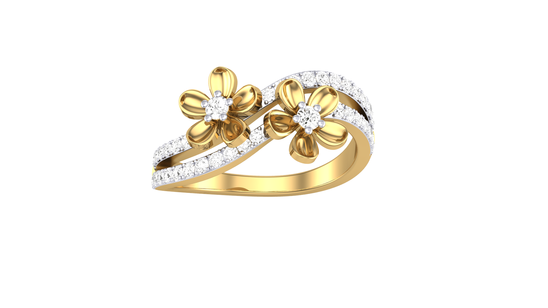 Eclat Vintage Duet Flora Gold Ring - 0.33 Ct Round Diamond Accents