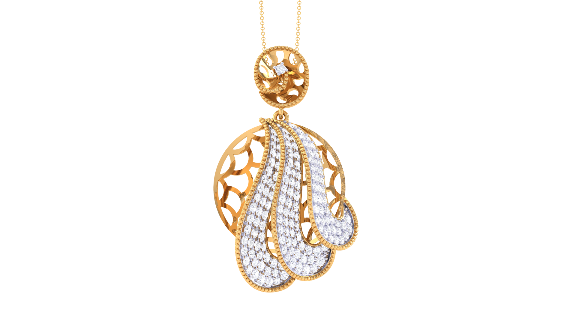 This elegant gold pendant features a woven earth-inspired design, set with 1.49 carats of round-cut diamonds that enhance its natural beauty.