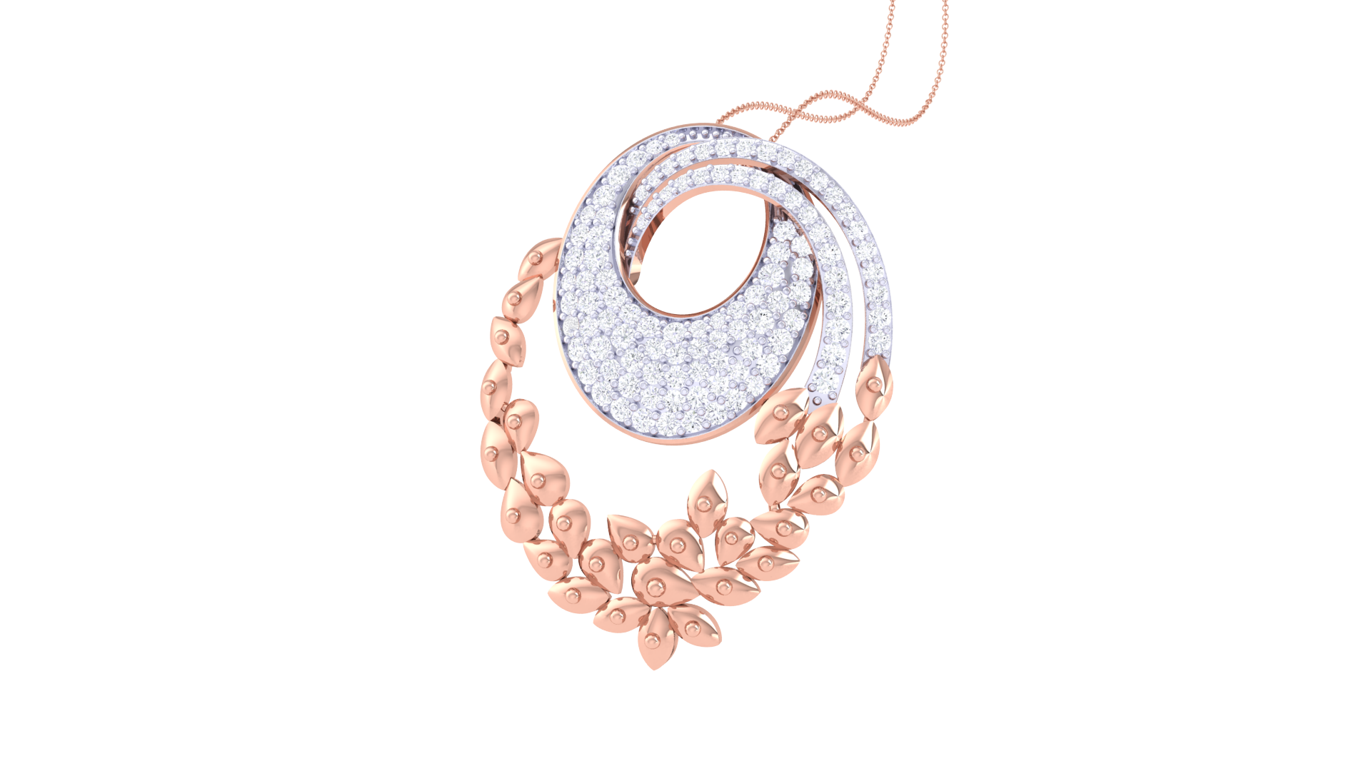 Floral Swirl Pendent In Rose Gold - 0.83 Ct Round Cut Diamonds